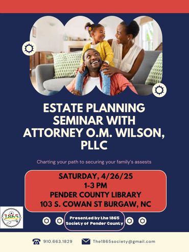 FOR MORE INFORMATION CONTACT THE 1865 SOCIETY OF PENDER COUNTY